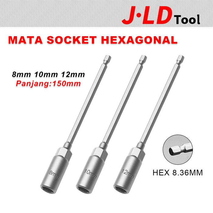JLD 150MM Ekstension Panjang Sambungan Mata Bor Obeng 8/10/12mm Kunci Socket Hex Impact Drive kunci full set - 8mm