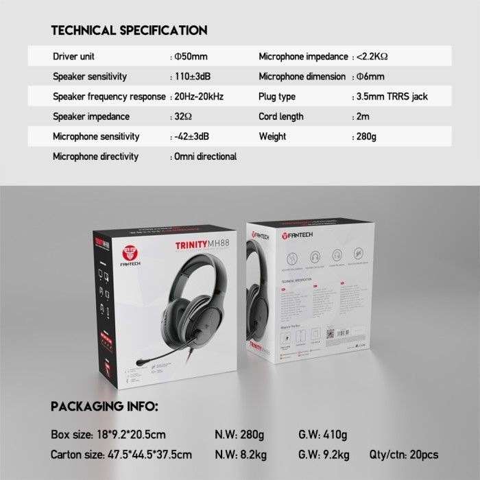Fantech MH88 / MH-88 Trinity Foldable Microphone Multiplatform Headset