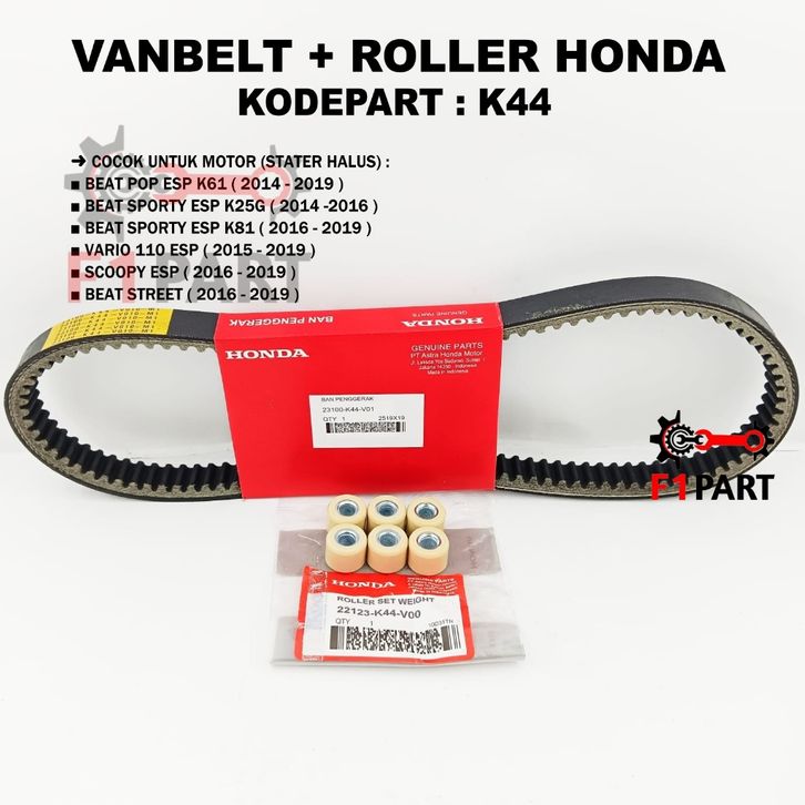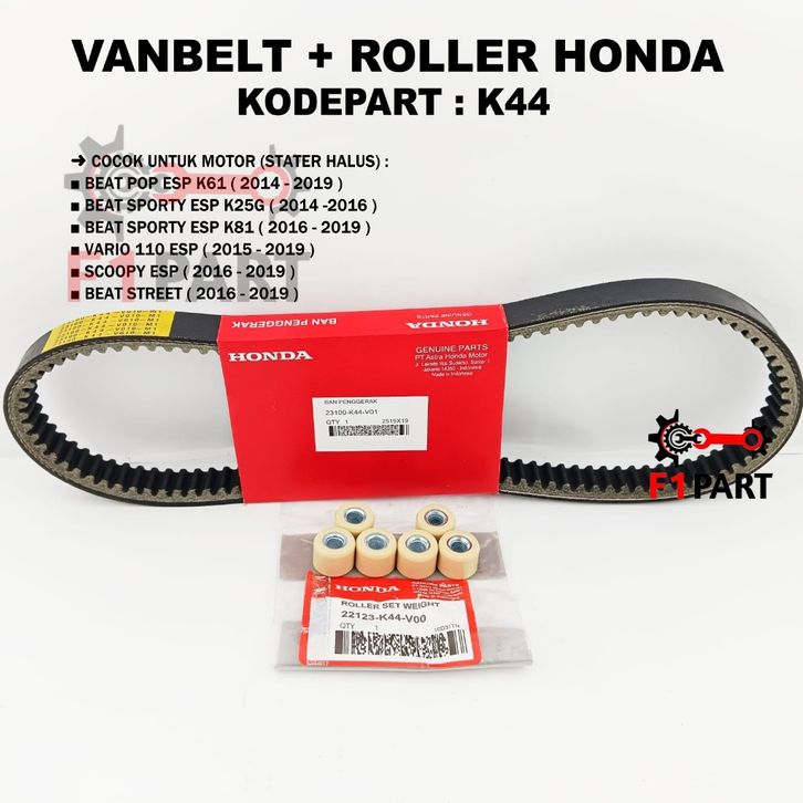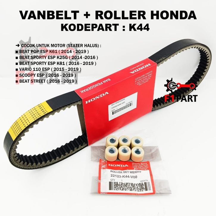 Vanbelt + Roller K44 Honda Beat Pop Beat Fi Beat Sporty Vario 110 Esp Scoopy Esp Stater Halus