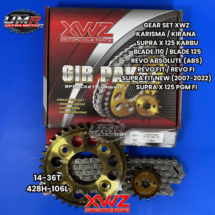 GEAR GIR SET GIR PAKET SUPRA X 125 FI SUPRA FIT NEW KARISMA REVO 428H HEAVY DUTY XWZ