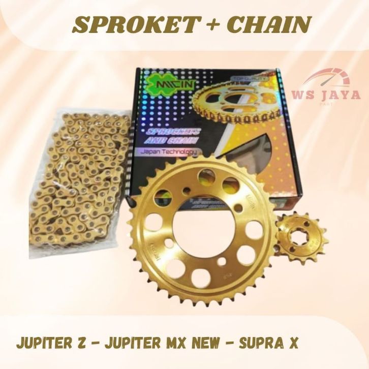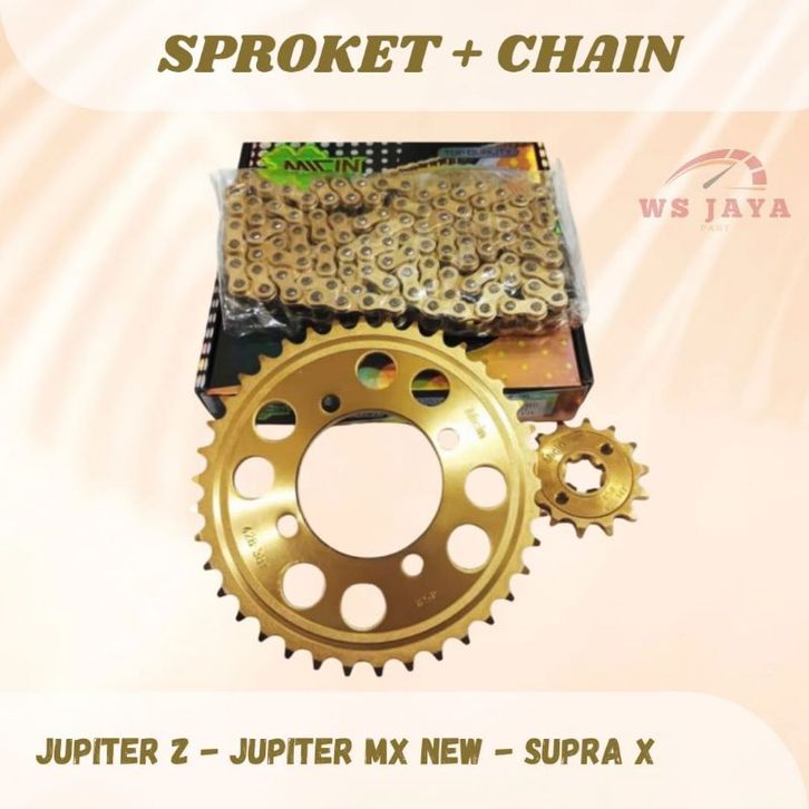RANTAI GIR GEAR SET EMAS RANTAI GIR RODA KIT SPROKET CHAIN HONDA YAMAHA - JUPITER Z JUPITER MX NEW