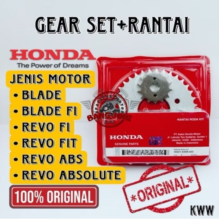 ASLI GEAR SET + RANTAI BLADE/BLADE NEW/REVO ABS-FIT ORINAL HONDA PUNYA KODE KWW
