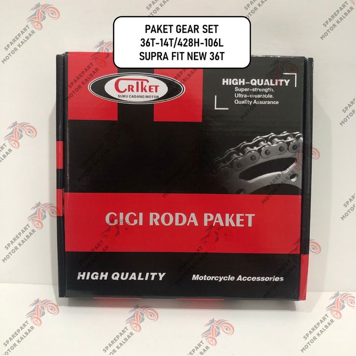 Paket Gear Set Motor SUPRA FIT NEW ; REVO ; KARISMA ; SUPRA X 125 ; REVO ABSOLUTE 36T-14T/428H-106L