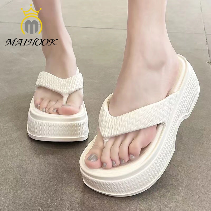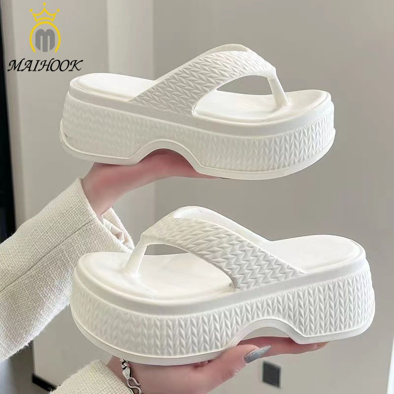 MAIHOOK Sandal Wanita Jepit Jelly Wedges Korea Style Terbaru 5.5cm Casual Premium Sendal Slop Wanita Dewasa Jelly Cewek Anti Slip empuk EVA