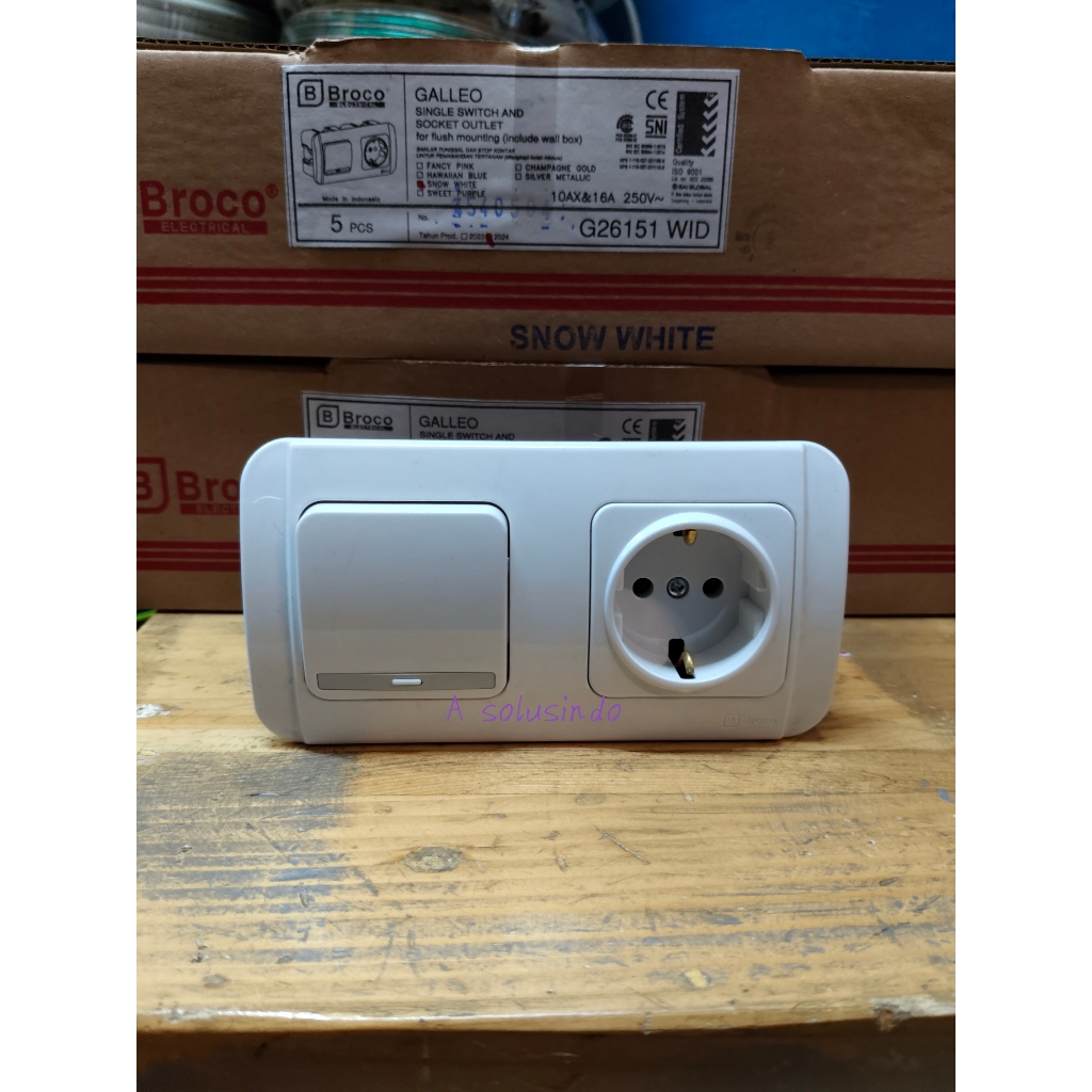 STOPKONTAK + SAKLAR SINGEL 1 ARAH SET INBOW - BROCO GALLEO PUTIH