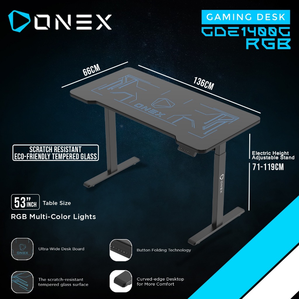 ONEX GDE1400G-RGB Adjustable Meja Gaming Desk Tempered Glass RGB