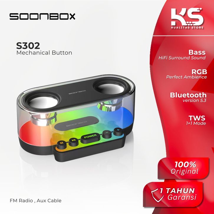 Promo SOONBOX S302 Speaker Bluetooth 5.3 Portabel 20W Suara 360 LED Lht Bass Sound + Mechanical