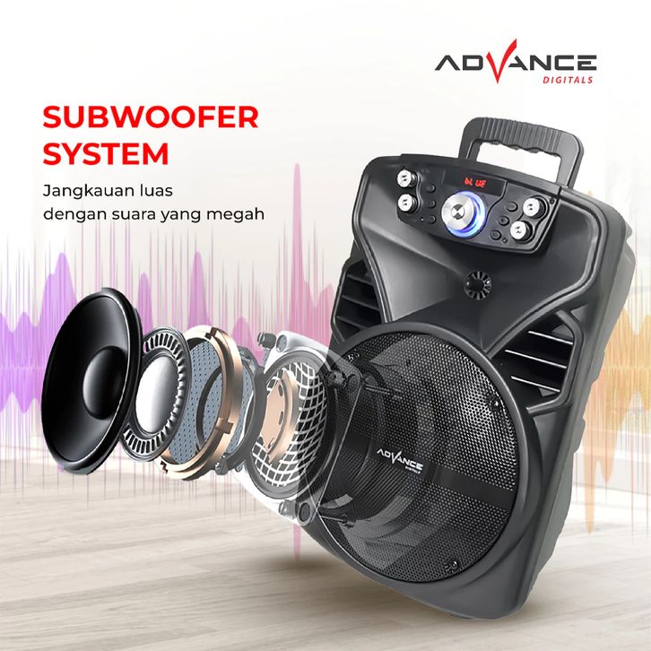 Promo ADVANCE Speaker Bluetooth Portable H801N 8 Inch Free 2 Mic Karaoke Wireless New