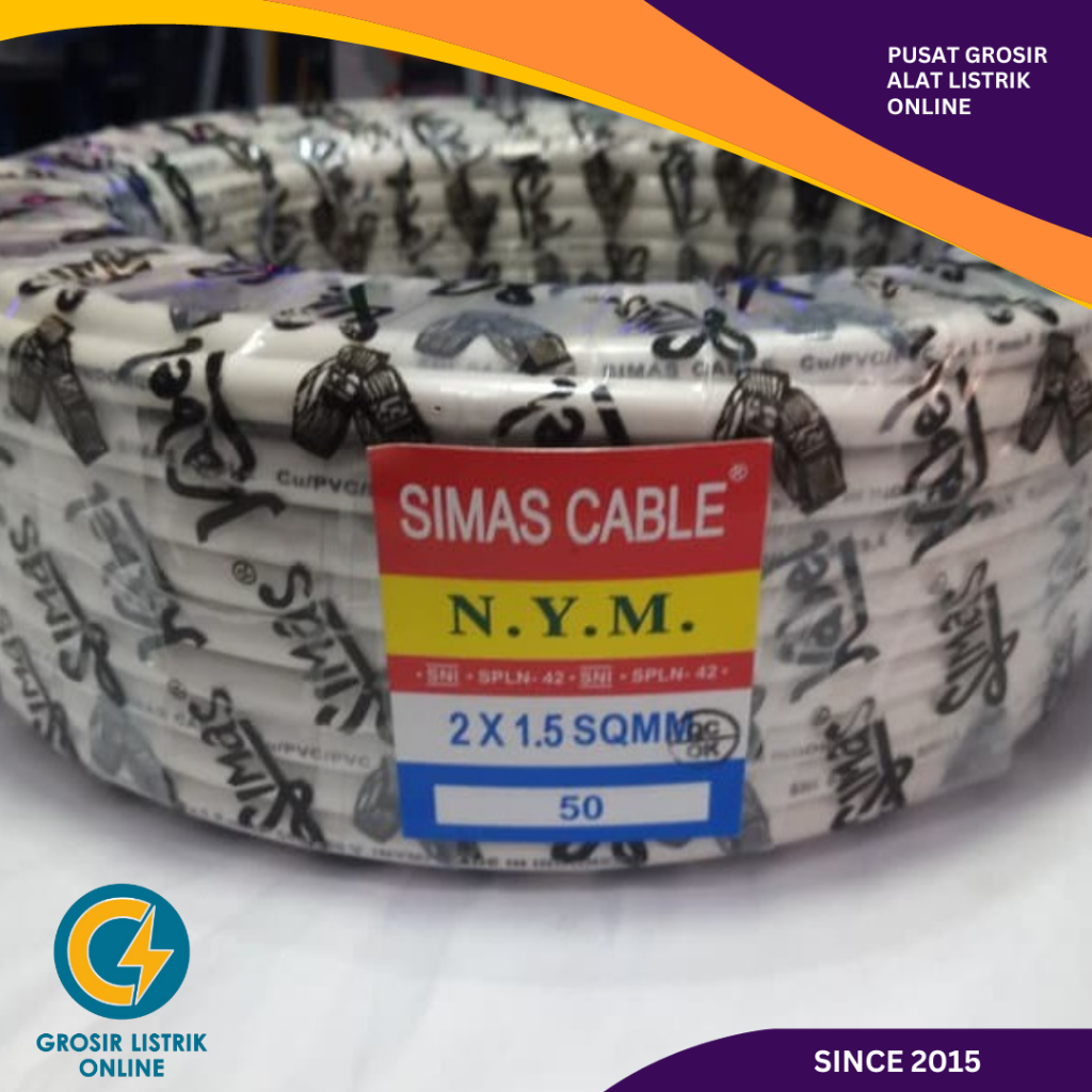 KABEL NYM 2X1,5 SIMAS LOTUS ORENCHI KAWAT TEMBAGA 2X1,5 2 X 1,5 SNI MURAH