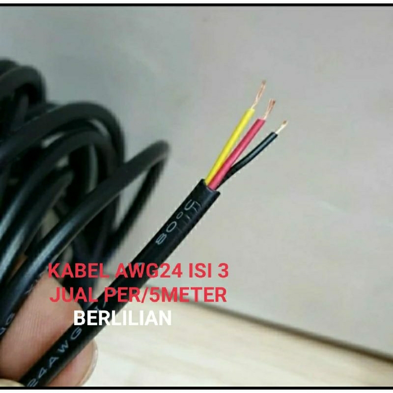 Kabel Awg24 isi 3 jual per/5meter Serabut Tembaga Full Kabel Awg24 3jalur
