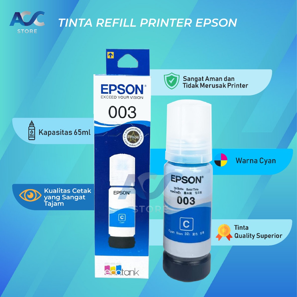 [Mall] Tinta Epson 003 Untuk Printer L1110 L3110 L3101 L3120 L3150 L5190 L3210 Cetak Tajam, Warna Hidup, Gak Bikin Kanto
