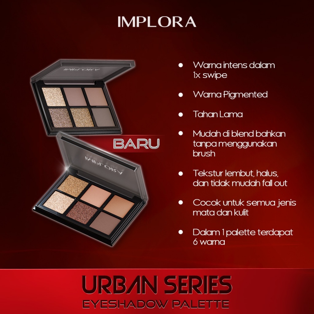 EYE SHADOW IMPLORA URBAN SERIES EYESHADOW PALETTE AFTERGLOW & AFTERGLAM BLENDABLE & PIGMENTED TAHAN LAMA