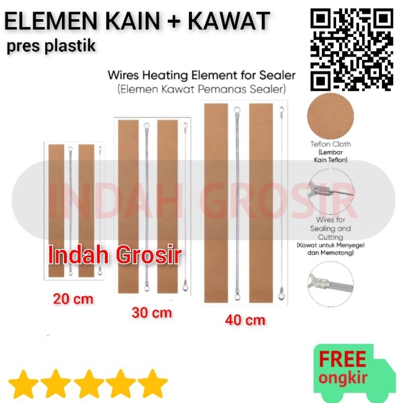 ELEMEN PRES PLASTIK KAIN + KAWAT PEMANAS IMPULSE SEALER 20 30 40 CM