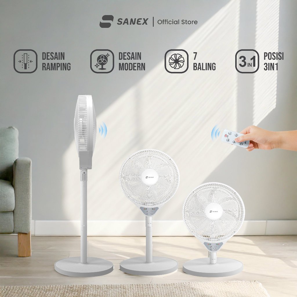 NEW ORIGINAL SANEX Jinie Series Kipas Angin Standing Berdiri 3in1 12 Inch SSF-1231 Remote