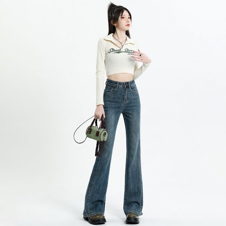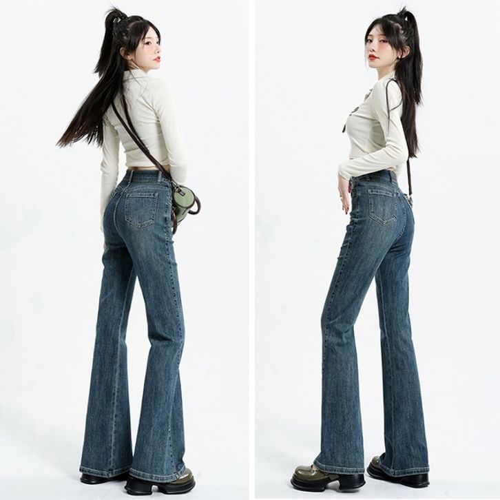 Jeans High Waist Wanita Kekinian Celana Cutbray Jeans Wanita Terbaru 2025 Celana Wanita Biru Retro Import