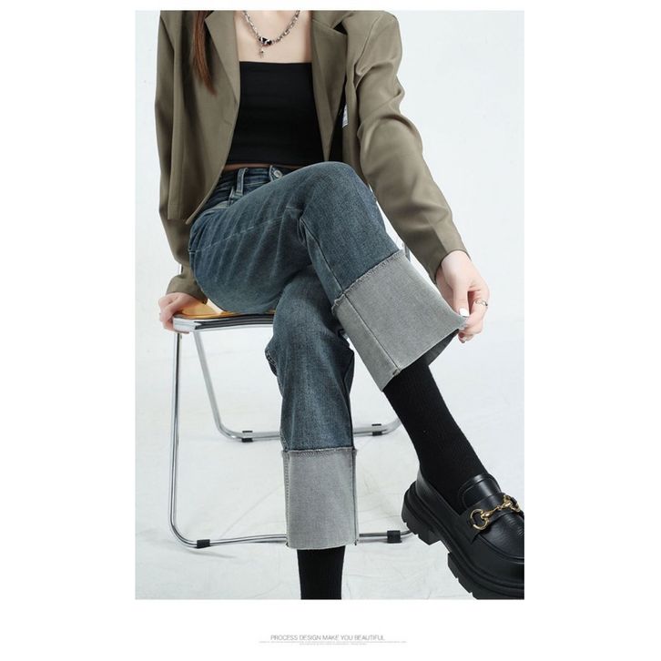 Celana Jeans Loose Jeans Highwaist Bahan Stretchy Warna Biru Retro Celana Vintage Loose Jeans Straight Rawis Bahan