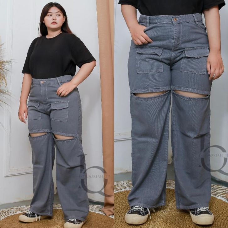 Celana Jeans C4wek Cargo Jeans Jumbo Sobek Panjang Kantong Depan Big Size