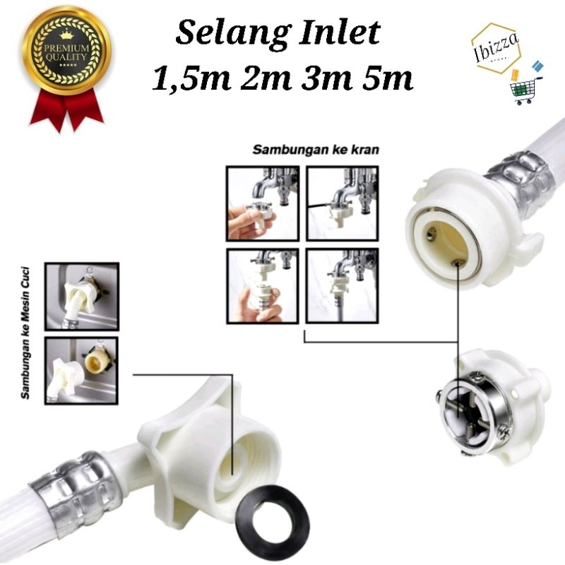 Selang Mesin cuci water inlet masukan air mesin cuci 2m, 3m, 5m meter untuk 1 atau 2 Tabung TOSHIBA / LG / POLYTRON / SAMSUNG / SHARP / SANKEN/ MIDEA Semua merk -