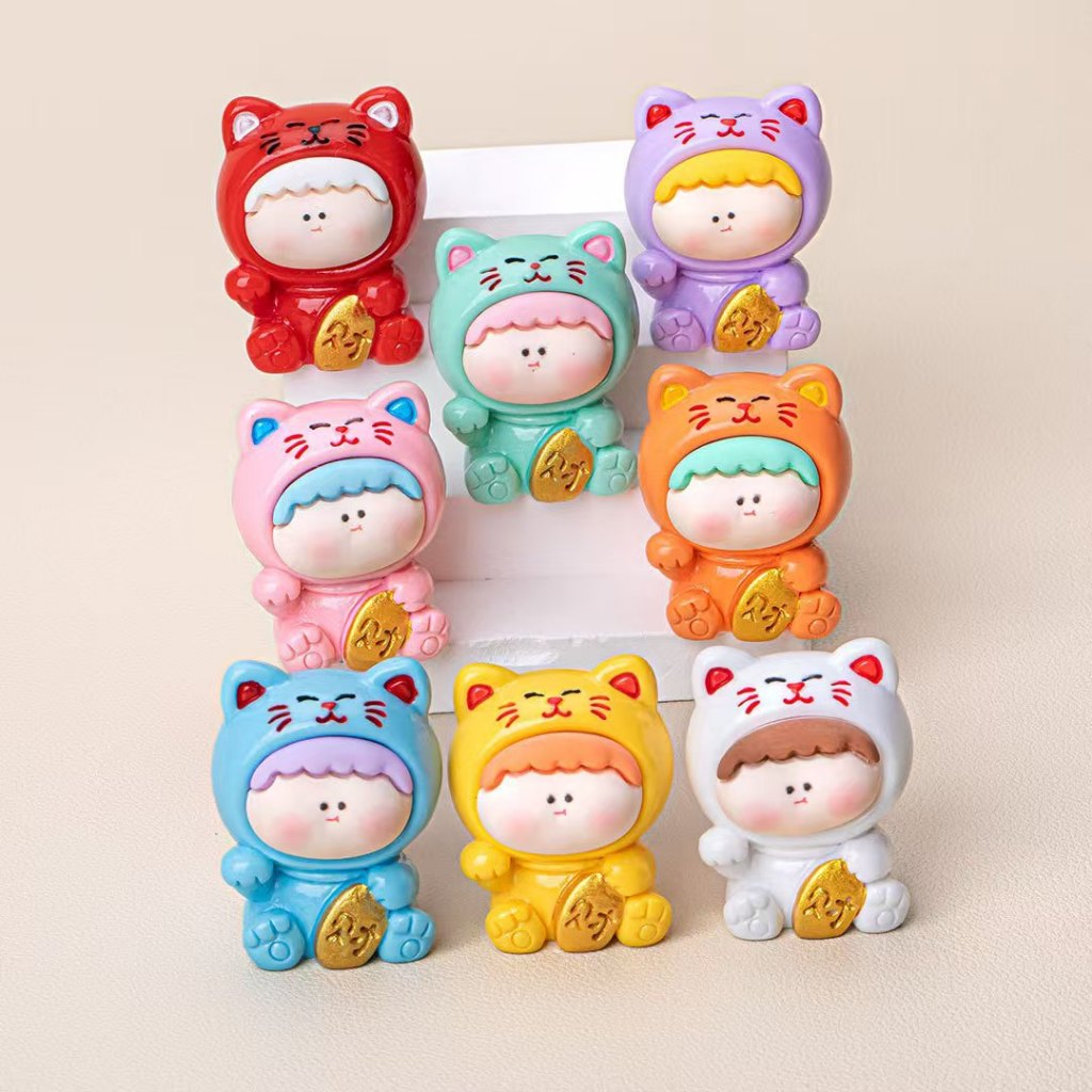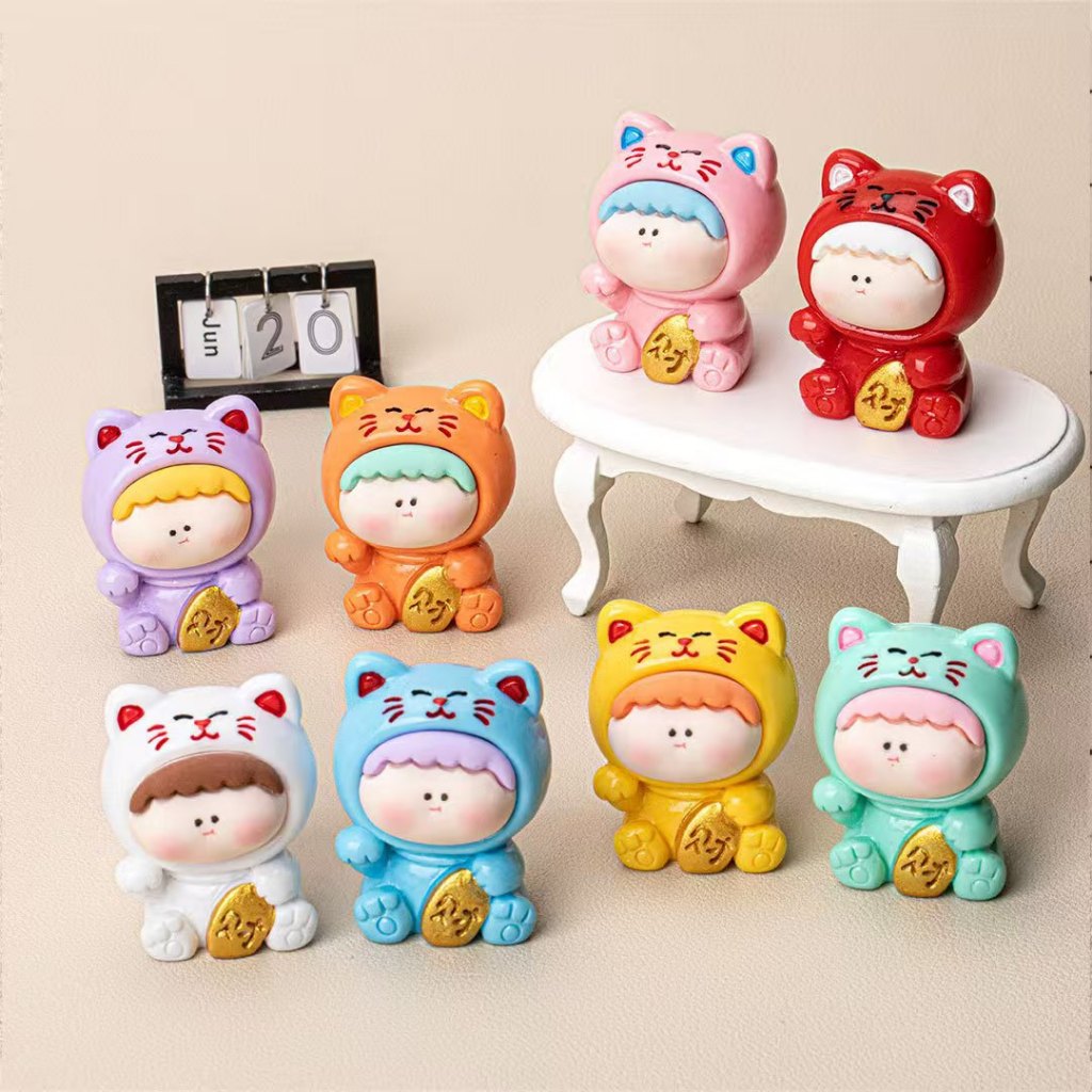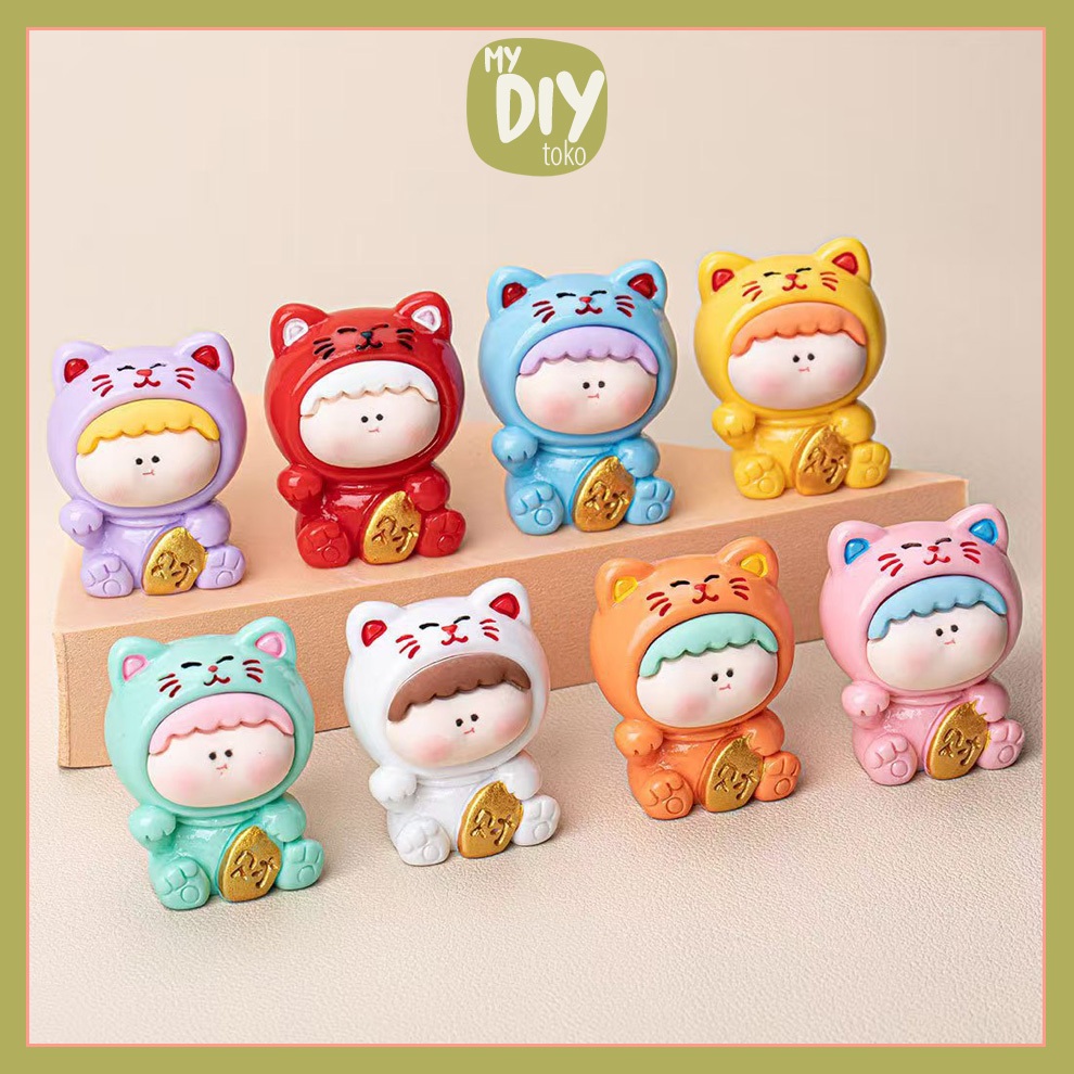 [Tanpa Lubang] Maneki Neko Miniature Resin Mini Kucing Pemanggil Rejeki Figure Clay Figure