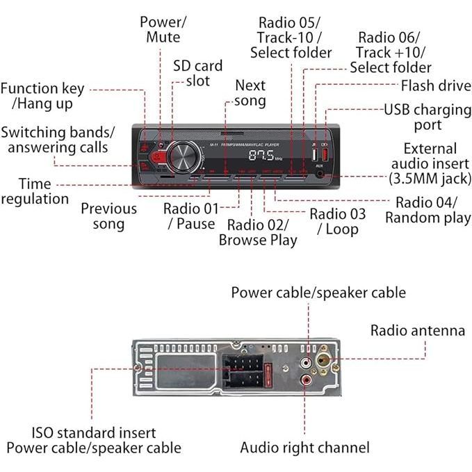 Tape Mobil 1 Din Universal Head Unit Stereo Bluetooth USB AUX FM 45Wx4