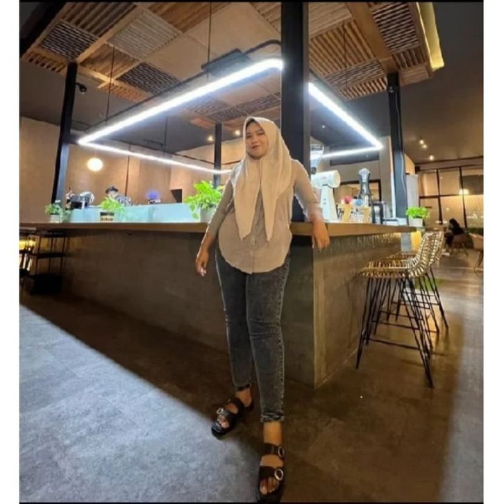 Celana Jeans Pinggang Karet Jumbo Meral Celana Jeans Pensil