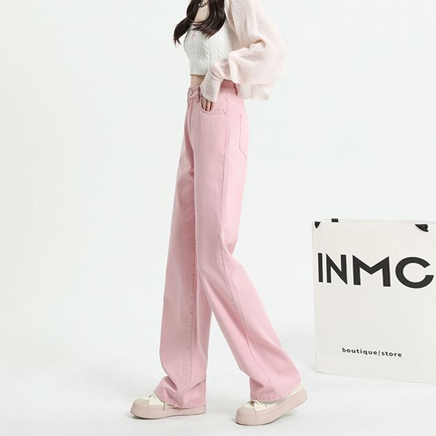Pink Jeans Baju Kodok Overall Wanita Warna Pink Highwaist Loose Kasual Jeans Wanita Korea Style