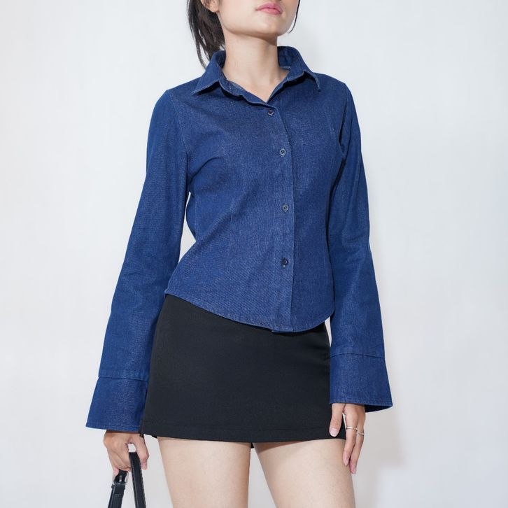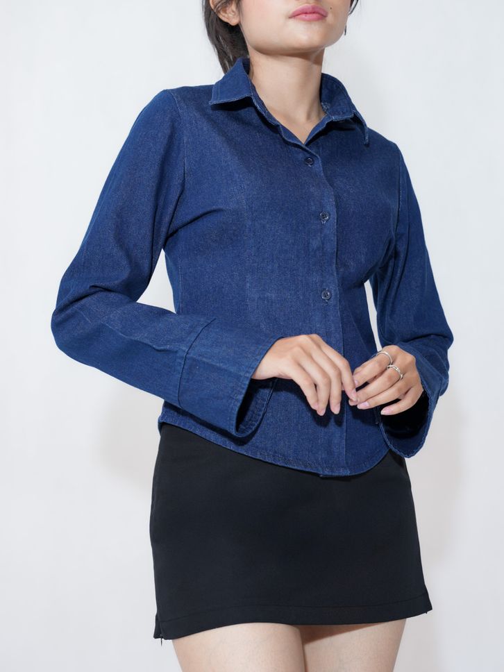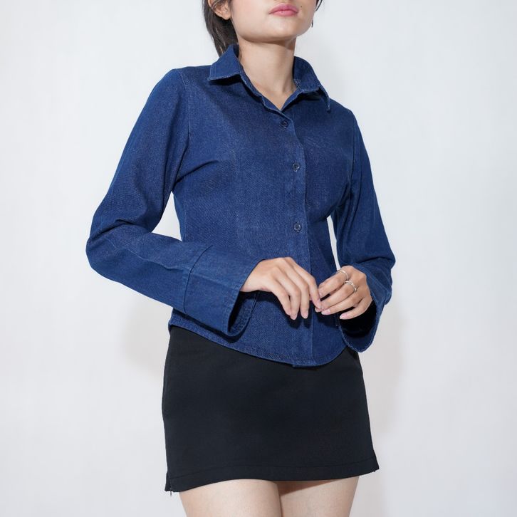 Kemeja Denim Wanita Denim Shirt Long Sleeve Kemeja Wanita Denim Lengan Panjang