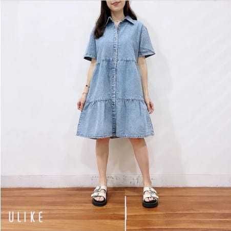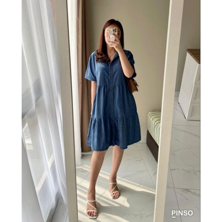 Dress Mini Denim Cewek Kekinian Snow Blue Peplum Dress Bahan Denim Jeans Premium Tebal Babydoll Cantik