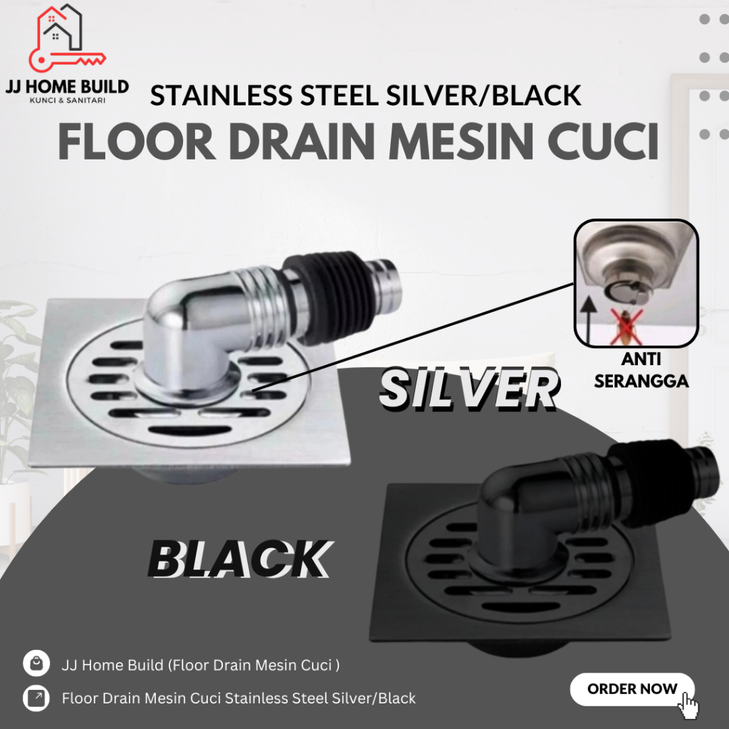 Floor Drain Mesin Cuci Stainless Steel/Floor Drain Mesin Cuci + Selang Konektor /Silver/Hitam Black