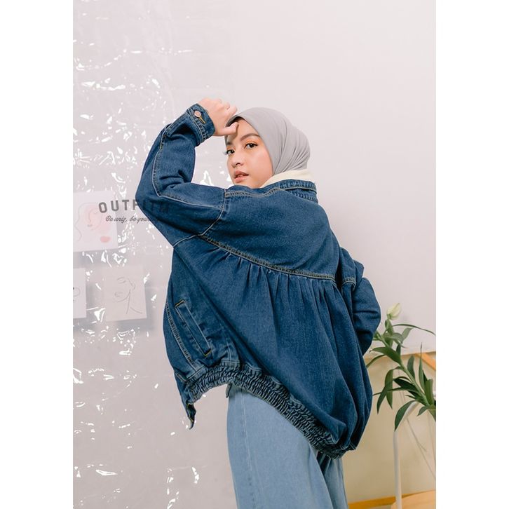 Outer Cewek Bahan Denim Jeans Outfit Kekinian Outfitm Furla Jacket Jaket Jeans Wanita
