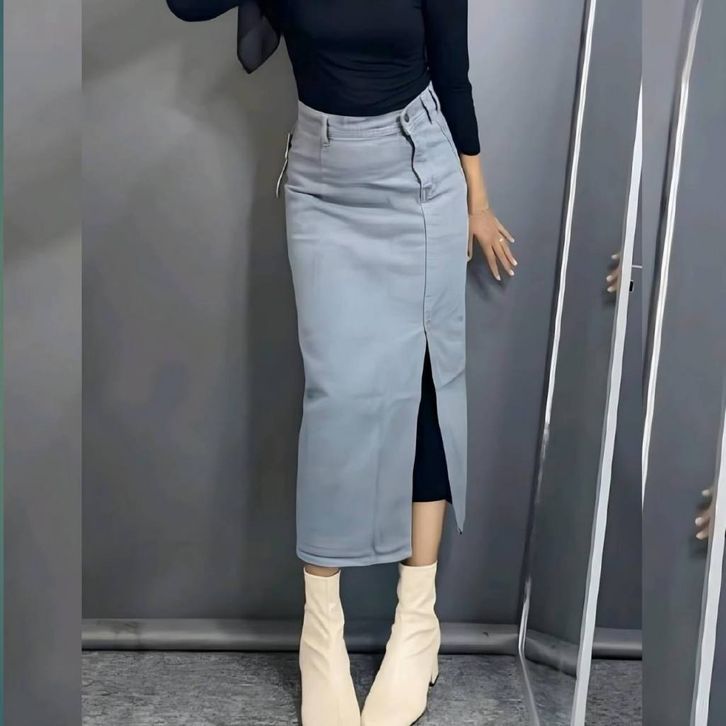 Rok Span Jeans Cewek Fashion Kekinian Rok Jeans Higwaist Split A Line Korean Style