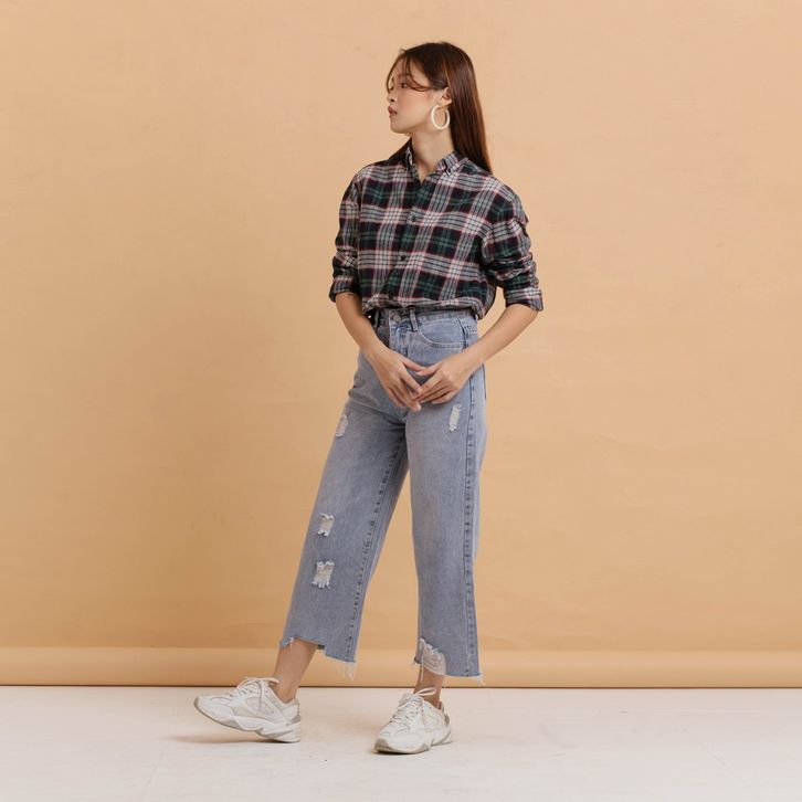 Celana Kulot Jeans Celana Denim Wanita Kekinian Fashion 2025 Celana Kulot Jeans Wanita