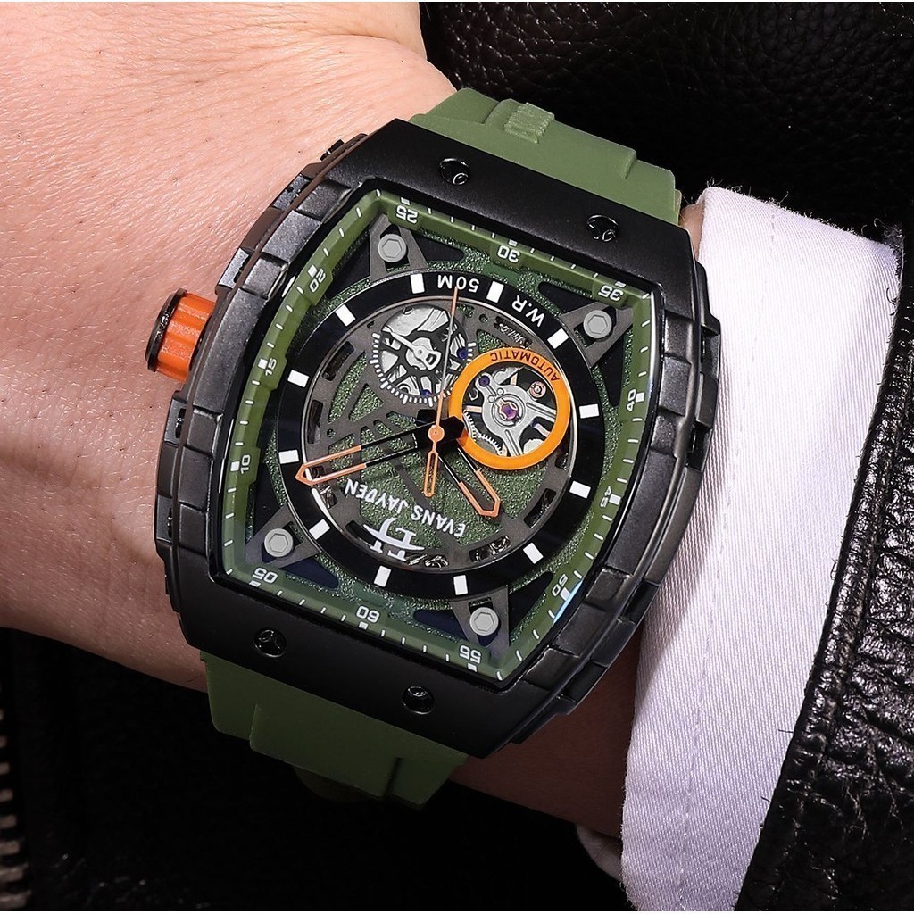 DISKON JAM TANGAN MURAH Evans Jayden Jam Tangan Pria 9564 Rubber Automatic Kaca Safir 5ATM