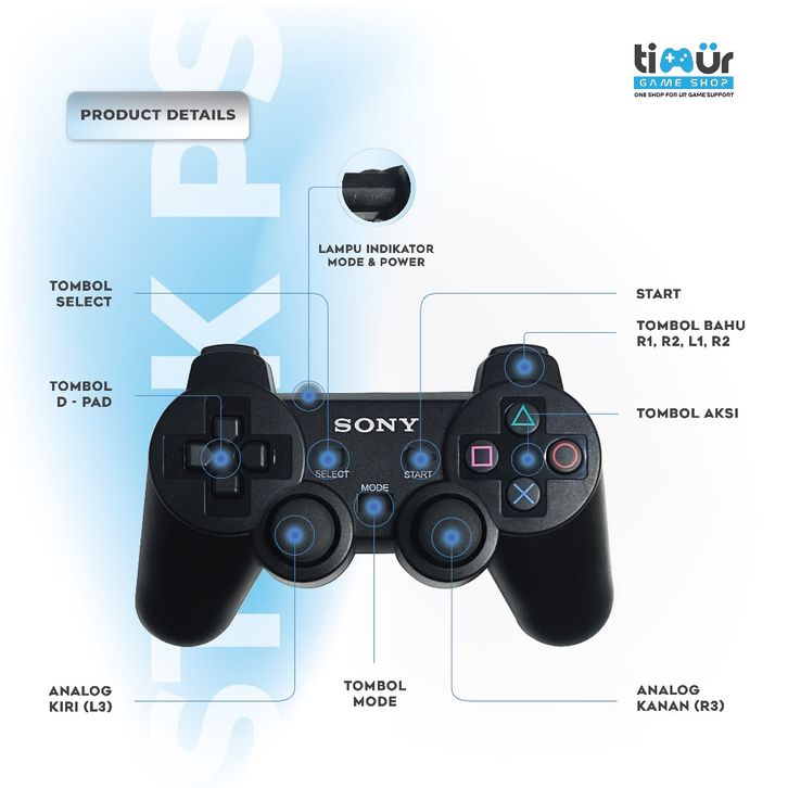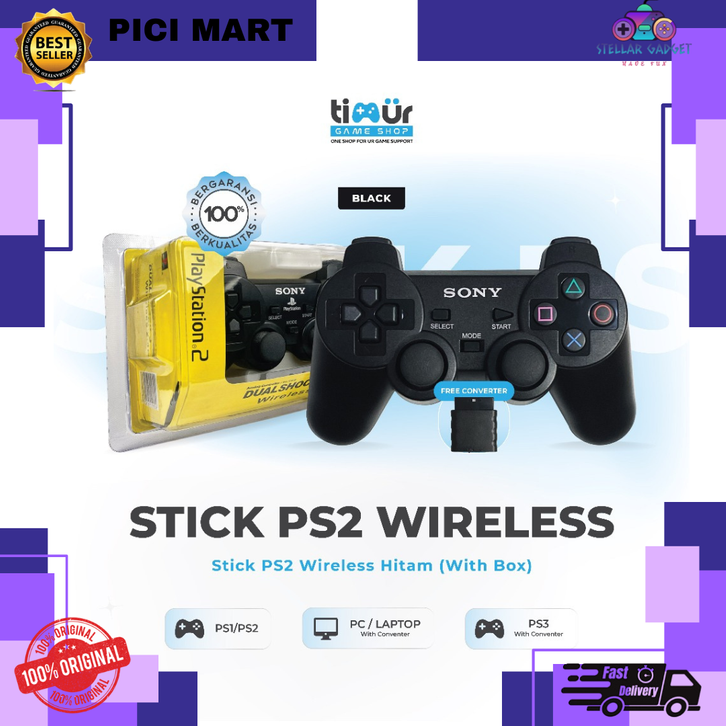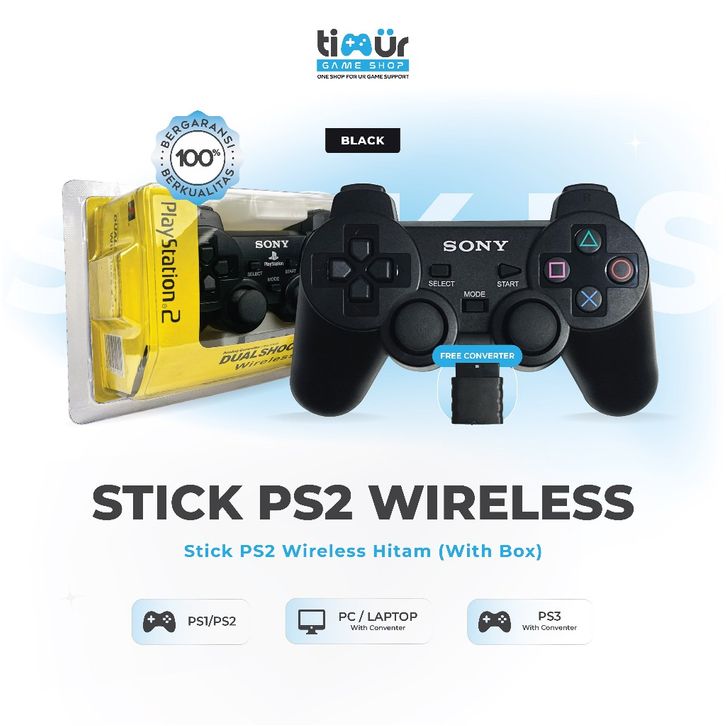 Stick Controller PS2 Wireless Ori Original Pabrik Hitam