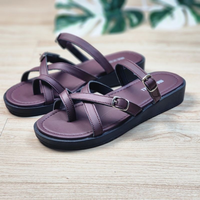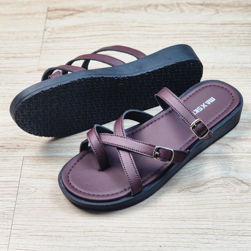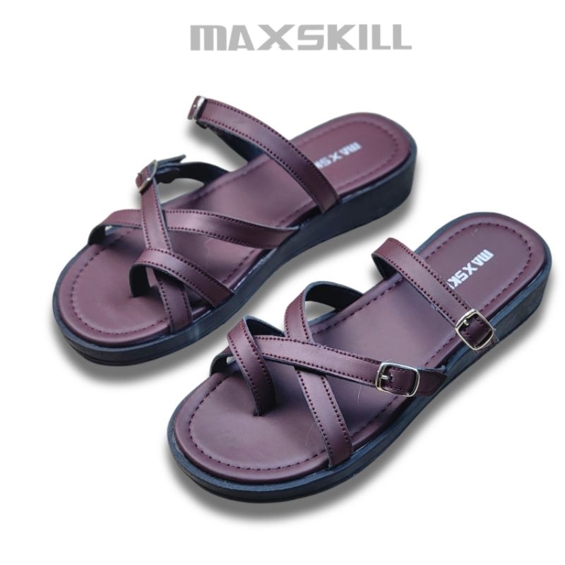 Maxskill Inara Burgundy Sandal Wanita Sendal Wedges tali gesper