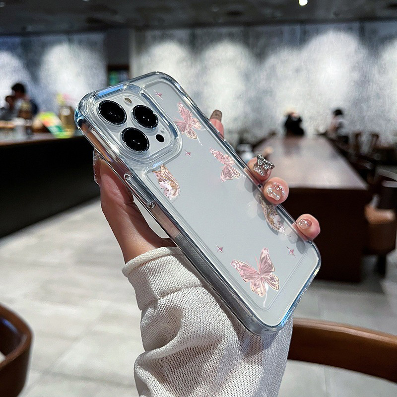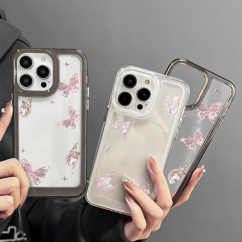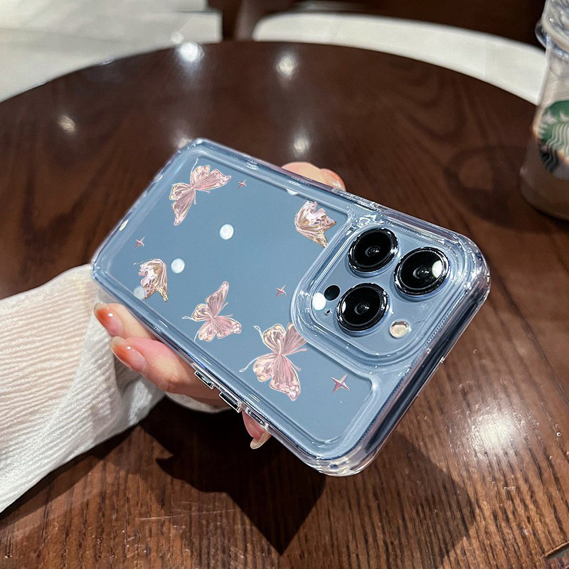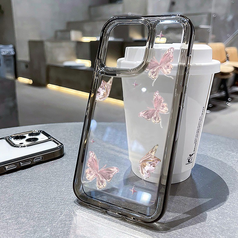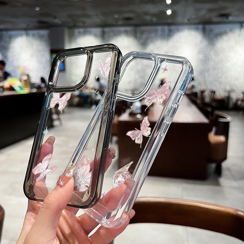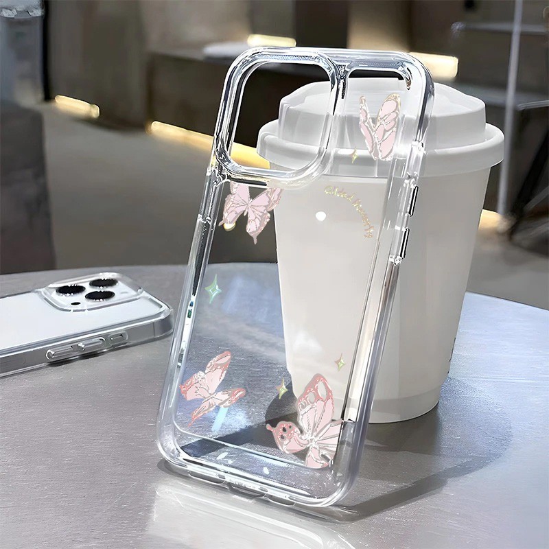 Fashion Kupu-kupu motif Case iPhone 13 15 16 11 12 14 Pro Max XR X Xs Kartun Estetik Pattern Casing hp 7 8 Plus SE 2020