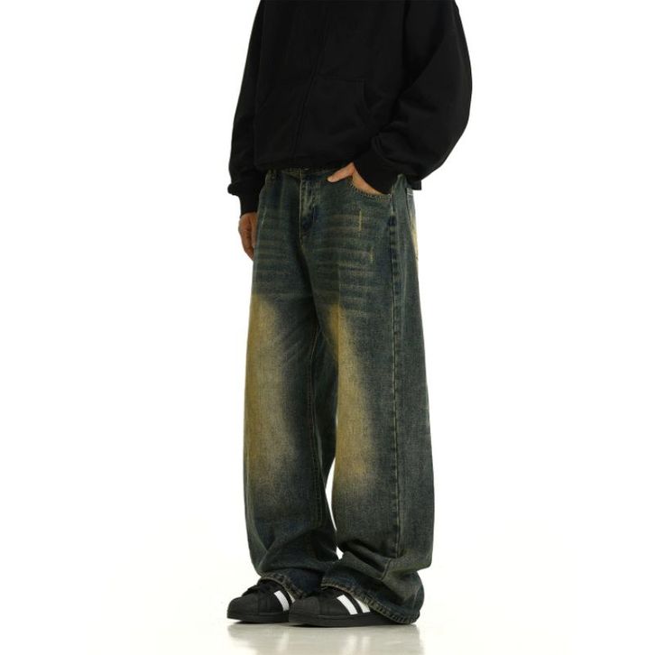 Celana Jeans Pria Wanita Trend 2025 Wide Leg Wisker Lebar Gombrong Skena Black Wisker Pria Loose Fit Jumbo