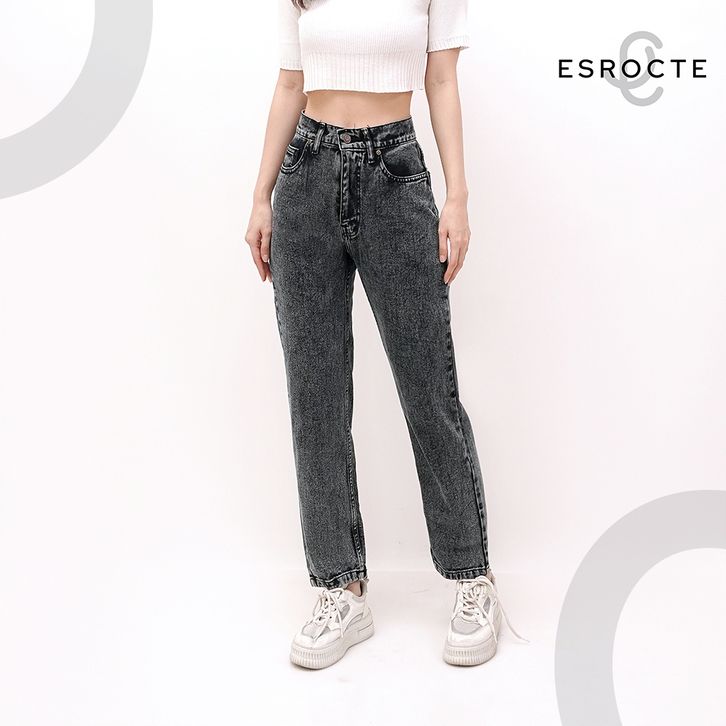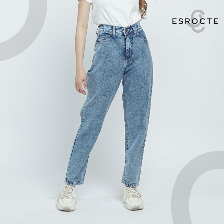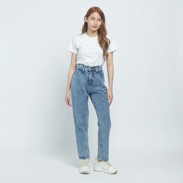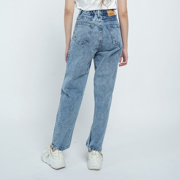 Celana Rubber Boyfriend High Waist Mom Jeans Wanita Celana Jeans Wanita