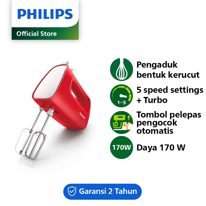 Mixer Philips - HR1552/10 - Hand Mixer - Mikser Philips - Mixer Pencampur - Mixer Kue - Merah