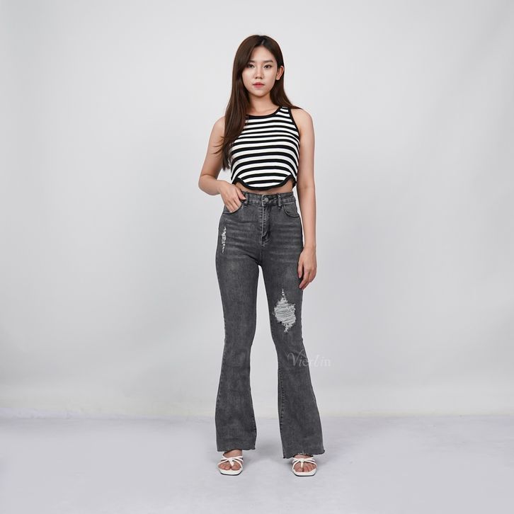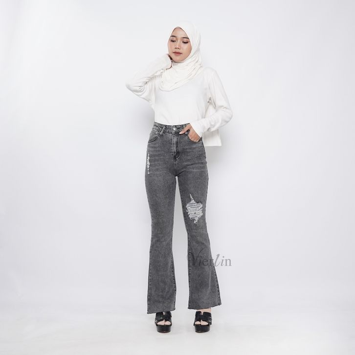 Celana Jeans Sobek Cutbray Celana Denim Wanita Ripped Jeans Cutbray Flare Jeans