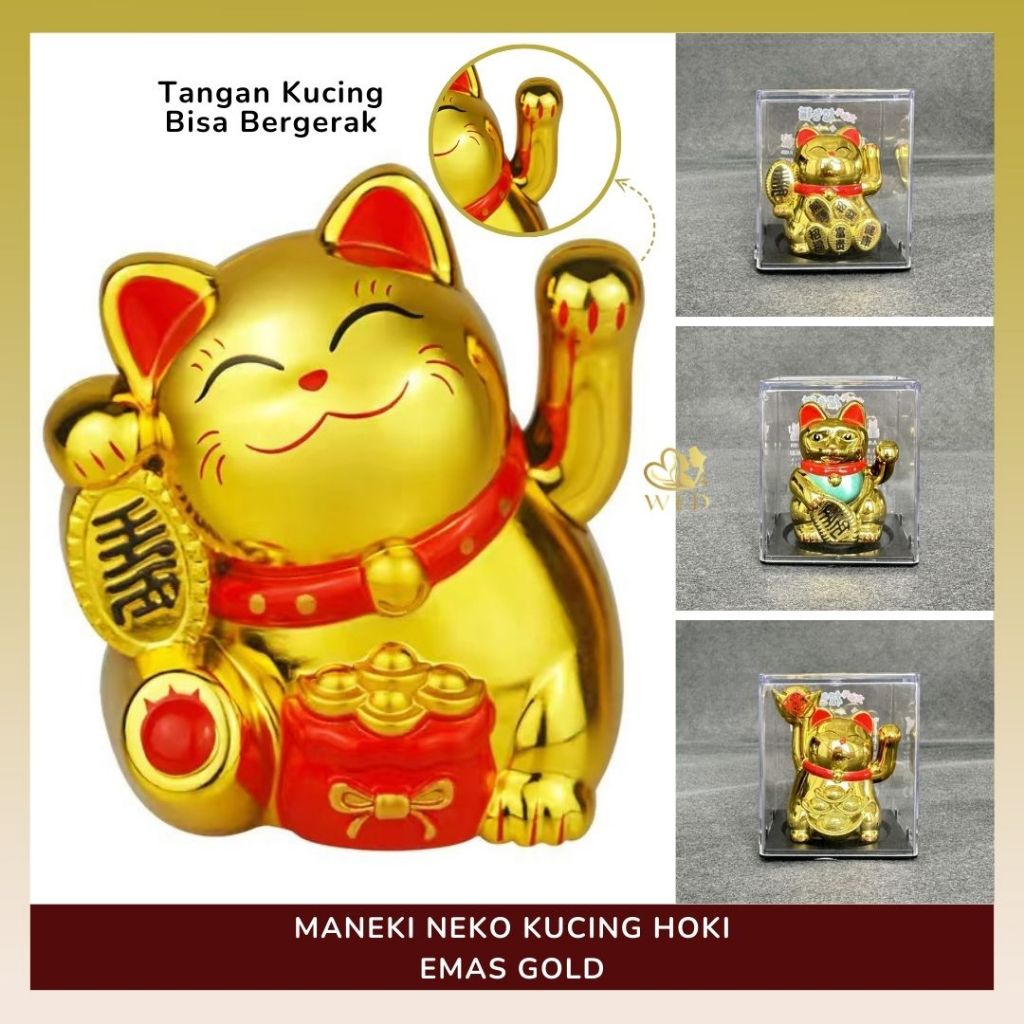 WED Patung Kucing Hoki Gold Maneki Neko / Mini Pajangan Lucky Cat Feng Shui Keberuntungan / Kucing Hoki Hiasan Toko SMB