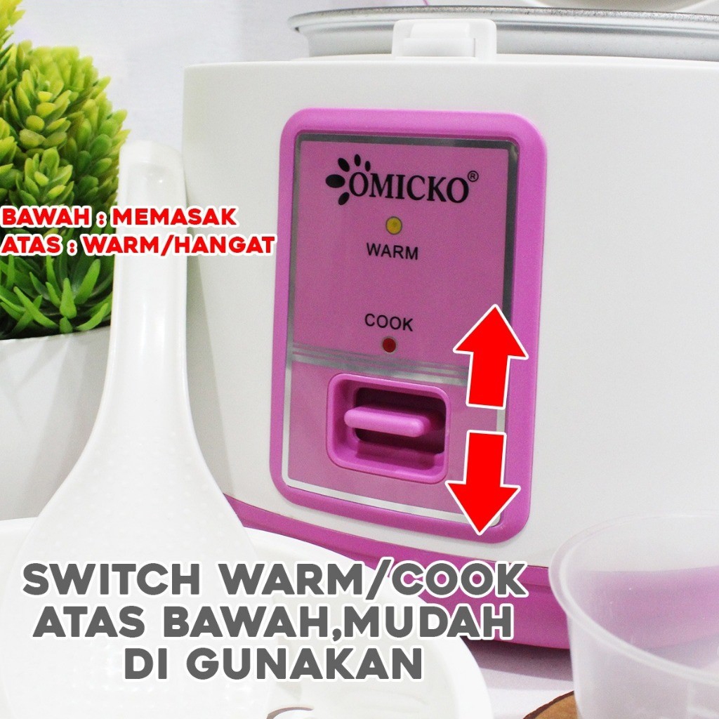 Omicko Rice Cooker Magic Com MC-101 PL(1,2 / 1,8 LITER) Penanak Nasi Rice Cooker 3 in 1 - Omicko(BUNUS Gelas Ukur dan Sendok Nasi)