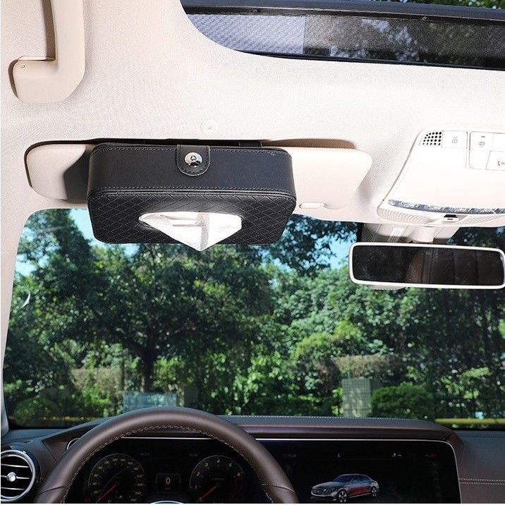 Kotak Tisu Mobil / Tempat Box Tissue Gantung Sunvisor Car Leather PU Kulit Motif Kotak Wajik Holder