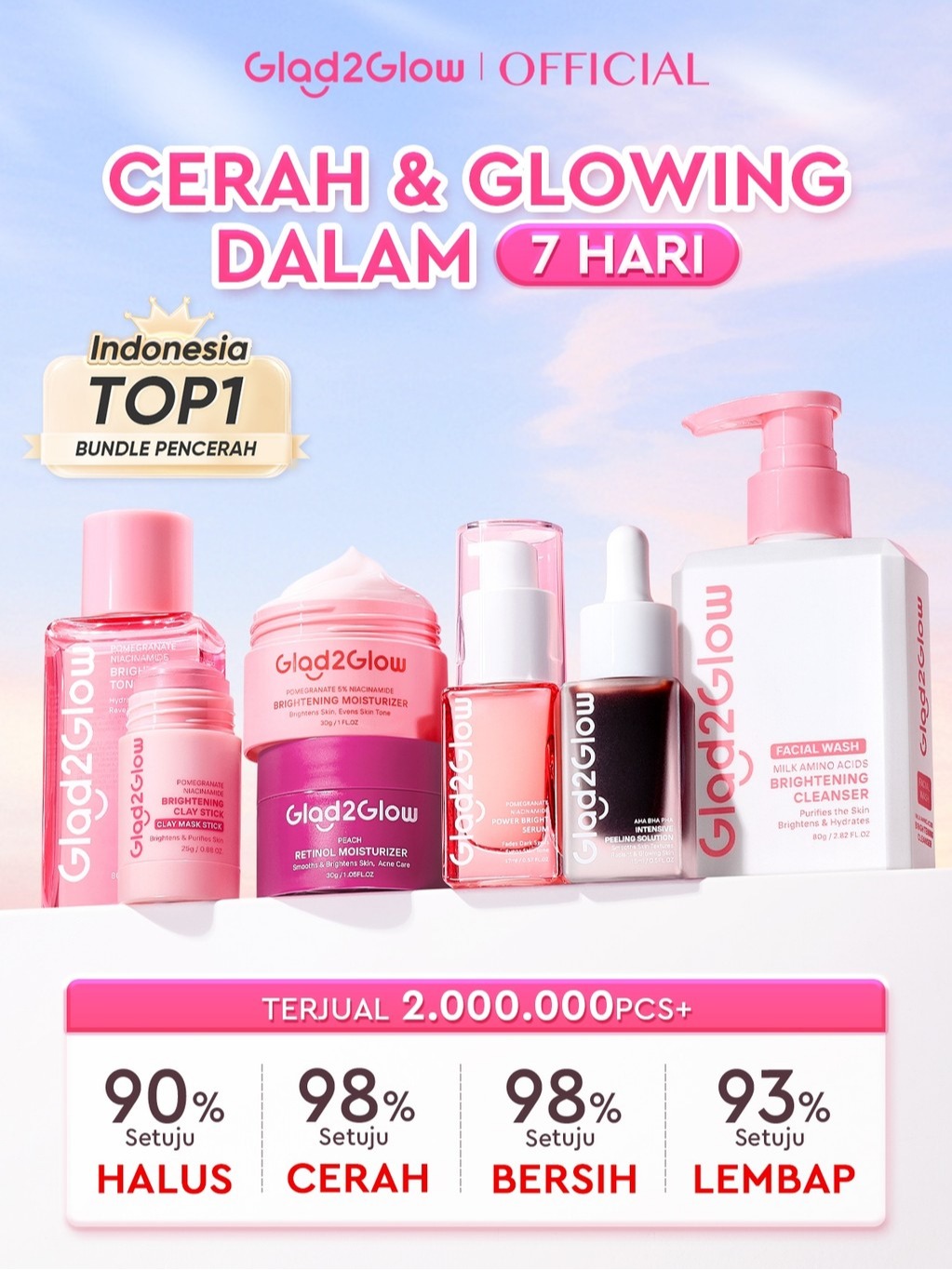 [Star] [ORDER NOW, HEMAT 40K] Glad2Glow Cerah Glowing Bundle all in 1 7in1-Brightening Moisturizer+Serum+Cleanser+toner+