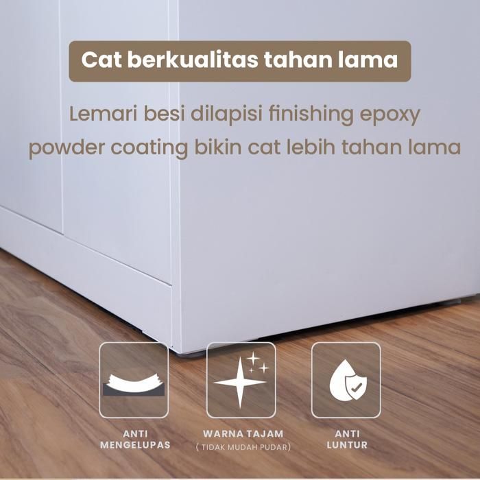 PIRA - ASHTON 6P FGD MWD Lemari Pakaian Besi 6 Pintu dengan Laci dan LED - ASHTON 6P LIGHT ASH - WHITE