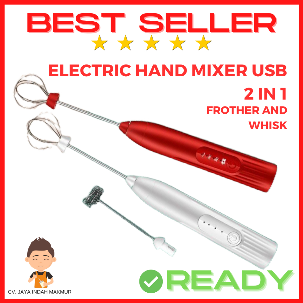 Mixer Electric Hand Pengaduk Kopi Susu Telur Kue Portable Kitchen Whisk 2in1 Milk Frother