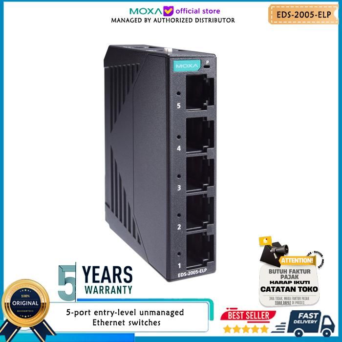 EDS-2005-ELP 5-PORT UNMANAGED ETHERNET SWITCHES WITH PLASTIC HOUSING MOXA