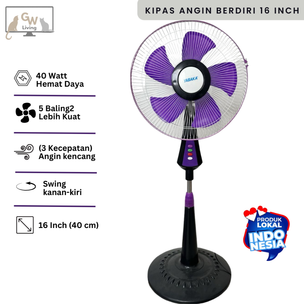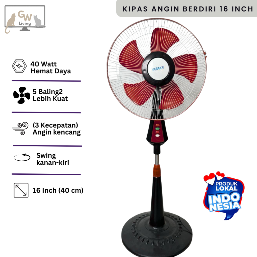 Kipas Angin Berdiri/Stand Fan 16 Inch 5 Baling Kencang Murah Hemat Daya