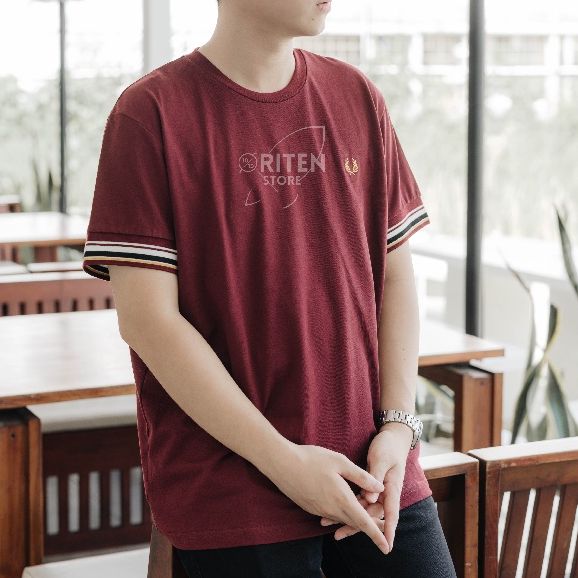 Fred Perry Stripped Cuff Tee Maroon Original / Baju Kaos Fredperry Authentic