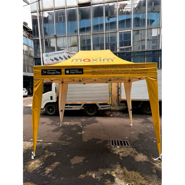 tenda lipat standar uk 2x3 besi hitam petak custome printing